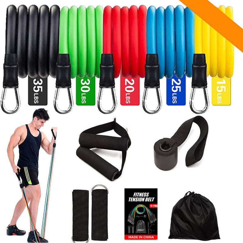 Elastic Rope Fitness Set for Men and Women - 12 Piece Resistance Band (100 lb.)