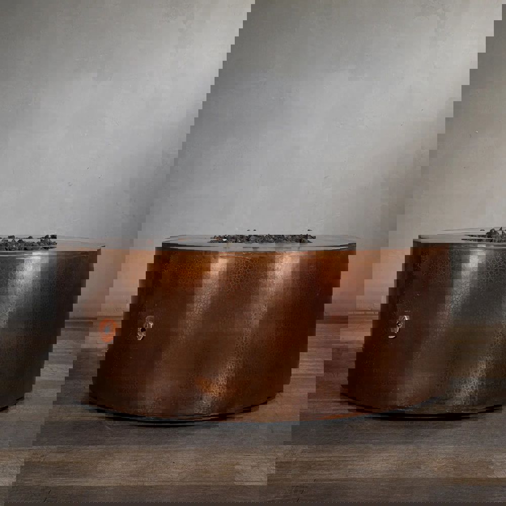 Moreno Gravity Rectangle Copper Gas Fire PitIntroducing the 45 Moreno Gravity Round Copper Gas Fire Pit a stunning addition to any backyard, patio, or community area. Crafted with precision from 100% pure copper by skilled artisans, this fire pit combines timeless beauty with modern functionality, offering an unparalleled outdoor experience.Benefits:Premium Materials: Meticulously crafted from 100% pure copper, this fire pit exudes elegance and sophistication, adding a touch of luxury to any outdoor space. The high-quality copper construction