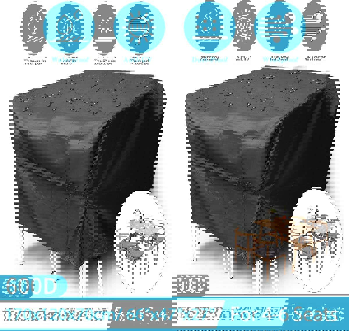 ULTCOVER 44 Inch Square Waterproof Patio Fire Pit Table Cover
