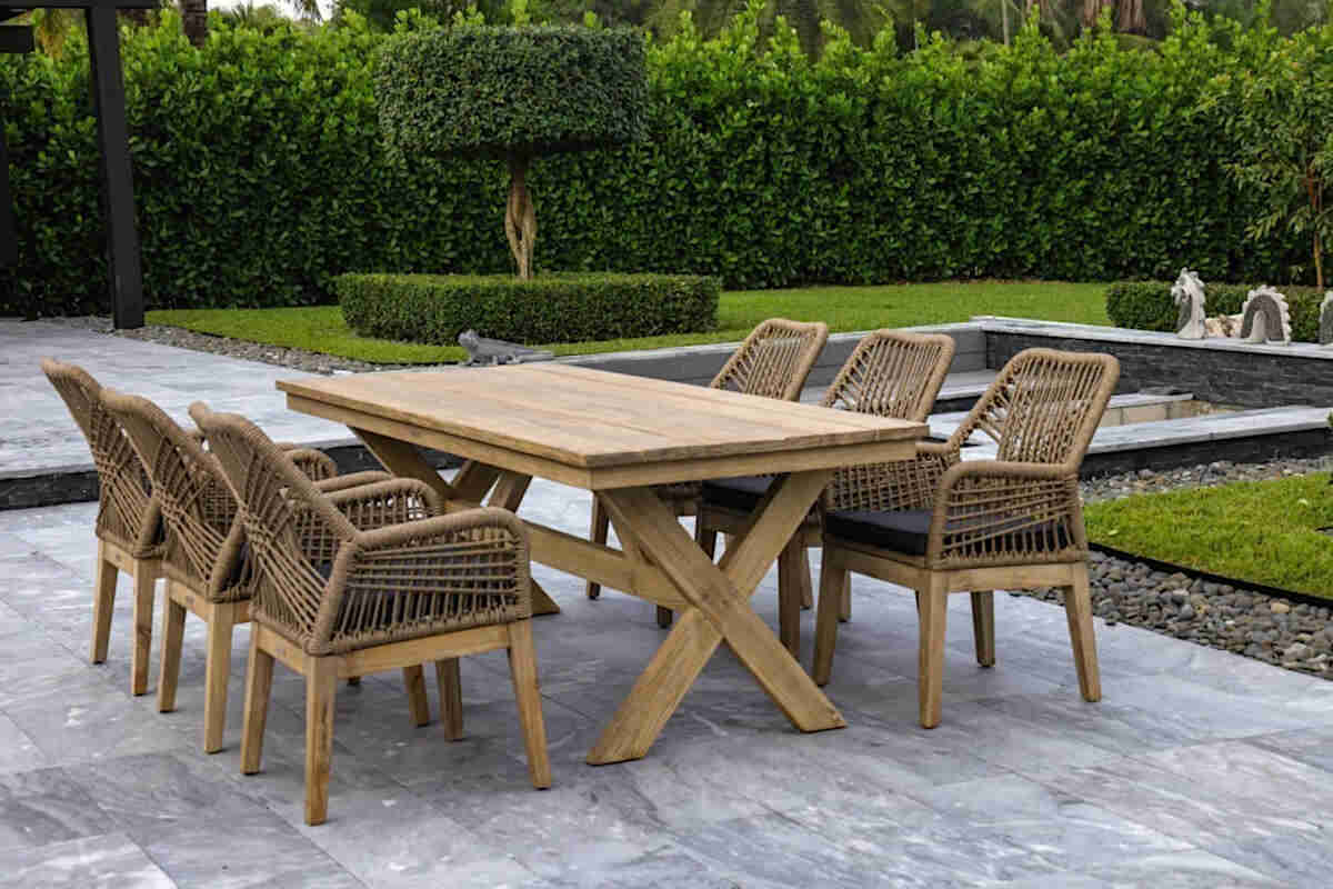 Outsy Santino 7-Piece Outdoor Dining Set - Wood Table with 6 Wood, Aluminum, and Rope Chairs