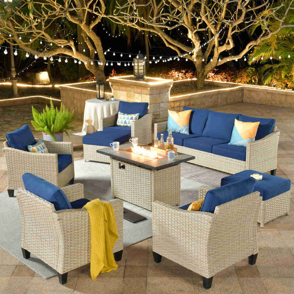 Ovios Athena Series 8-Piece Outdoor Patio Furniture Set with 42" Rectangle Propane Fire Pit Table