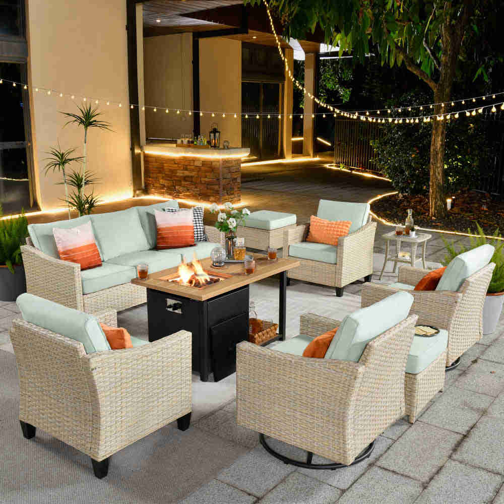 Ovios Athena Series 9-Piece Outdoor Patio Furniture Set with Swivel Chair & Fire Pit Table