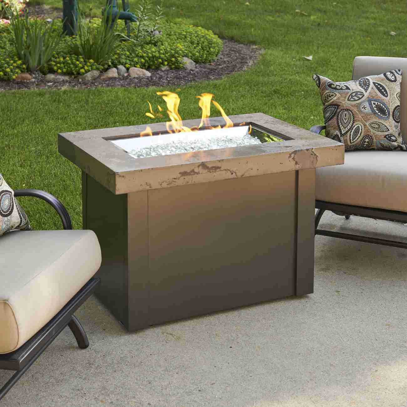 The Outdoor GreatRoom Company Providence 32-Inch Rectangular Natural Gas Fire Pit Table - Brown