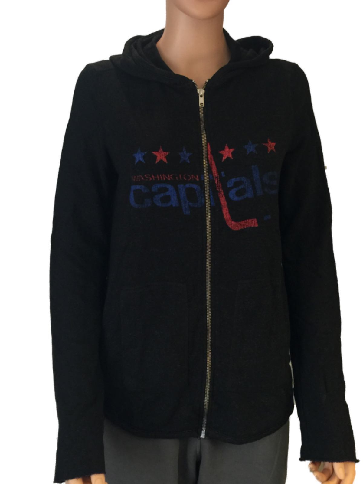 Washington Capitals Retro Brand Women Black Quad Blend Zip Up Hoodie Jacket