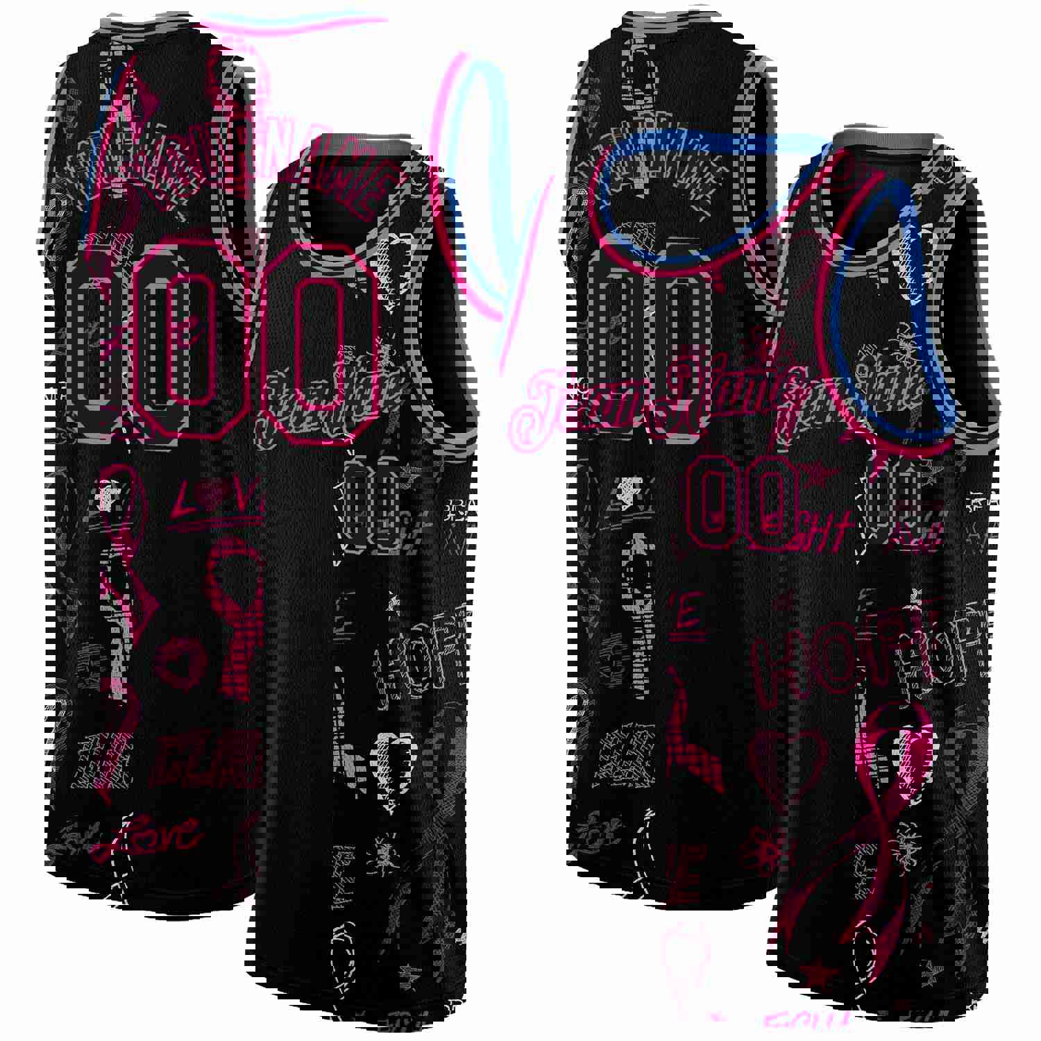Custom Black Pink-Light Blue 3D Pattern Design Pink Ribbon Breast Cancer Awareness Basketball Jersey