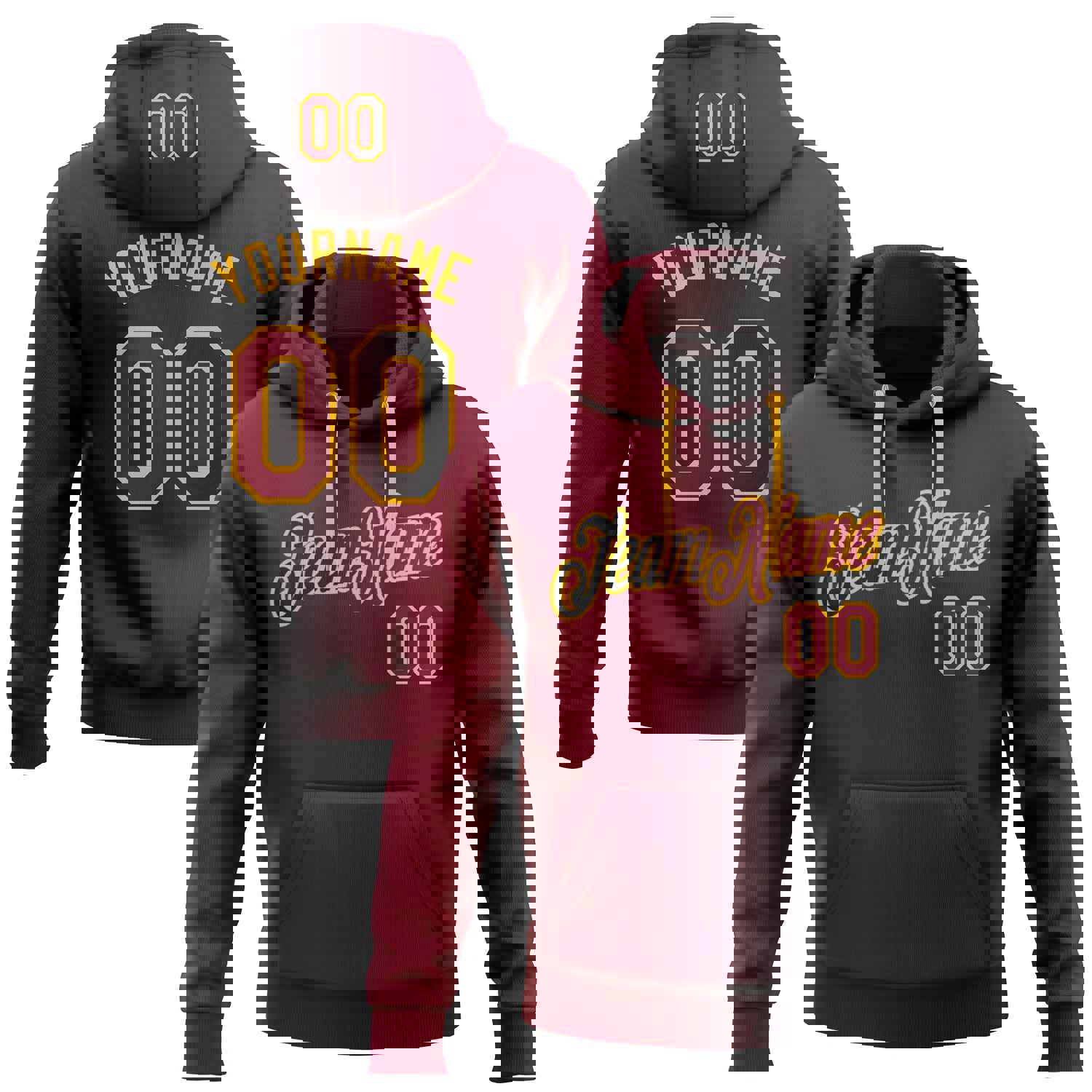 Custom Stitched Black Crimson-Gold Gradient Fashion Sports Pullover Sweatshirt Hoodie