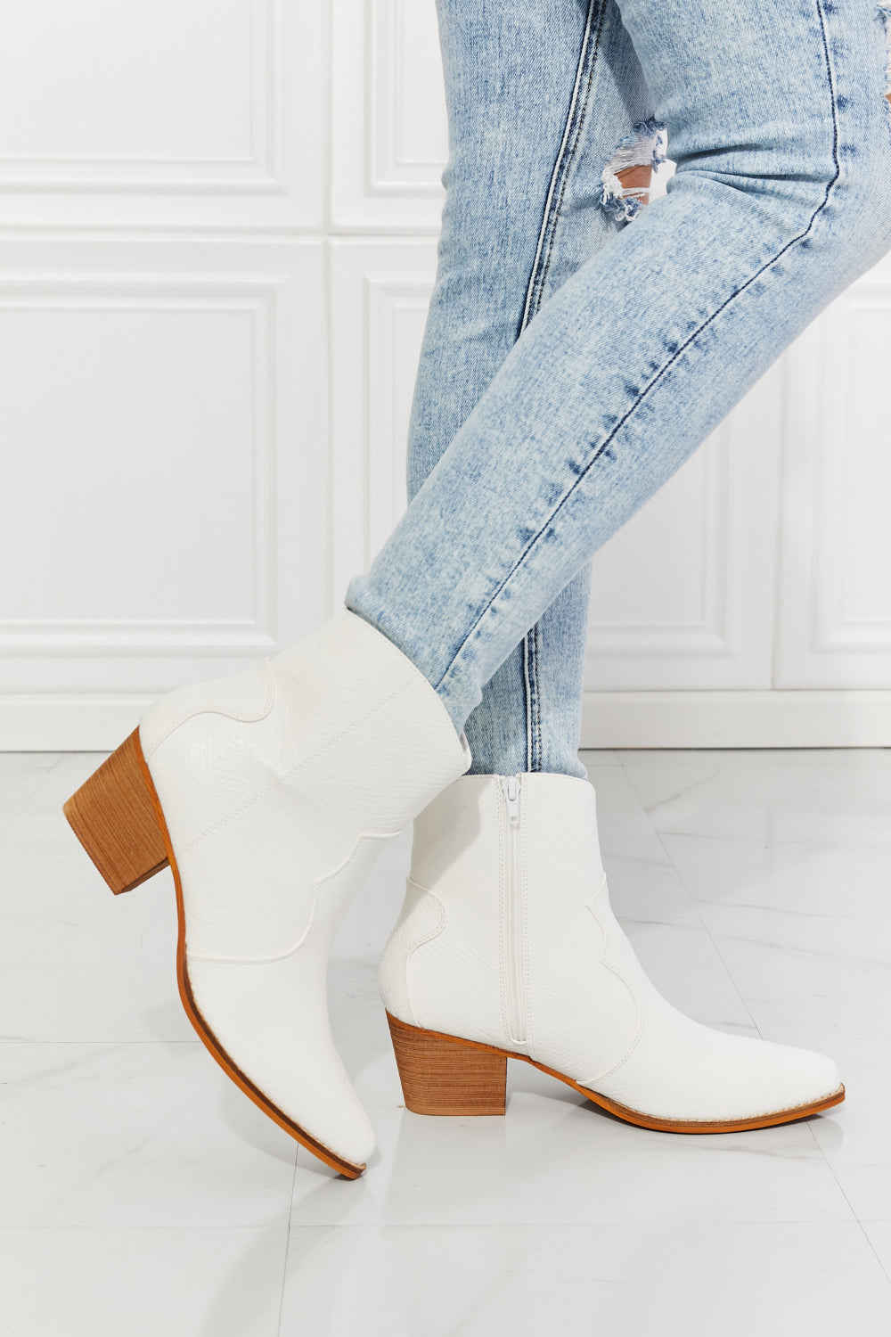 MMShoes Watertower Town Faux Leather Western Ankle Boots in White