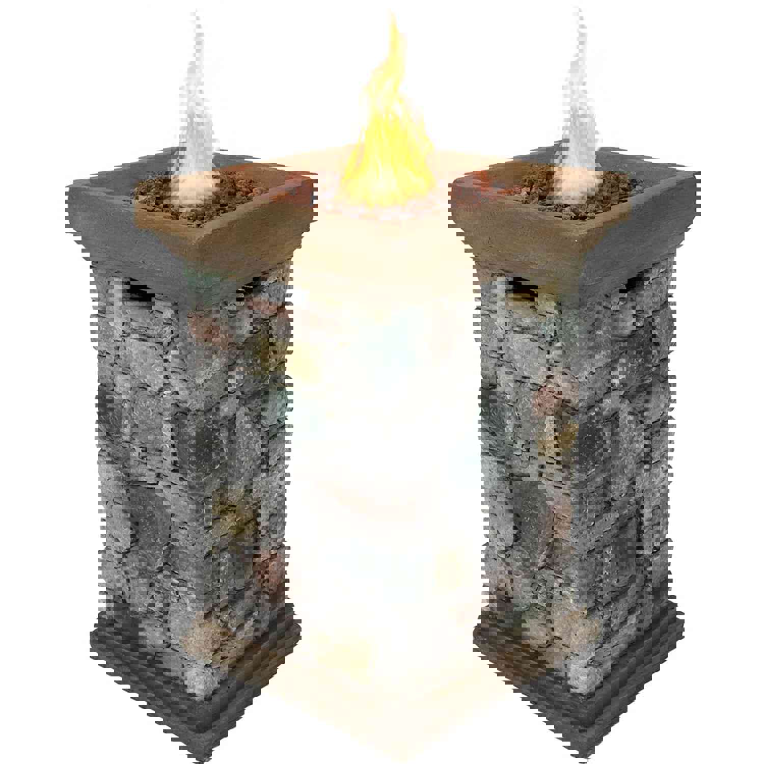 Sunnydaze Outdoor 30-Inch Tall Cast Rock Column Design Propane Gas Fire Pit