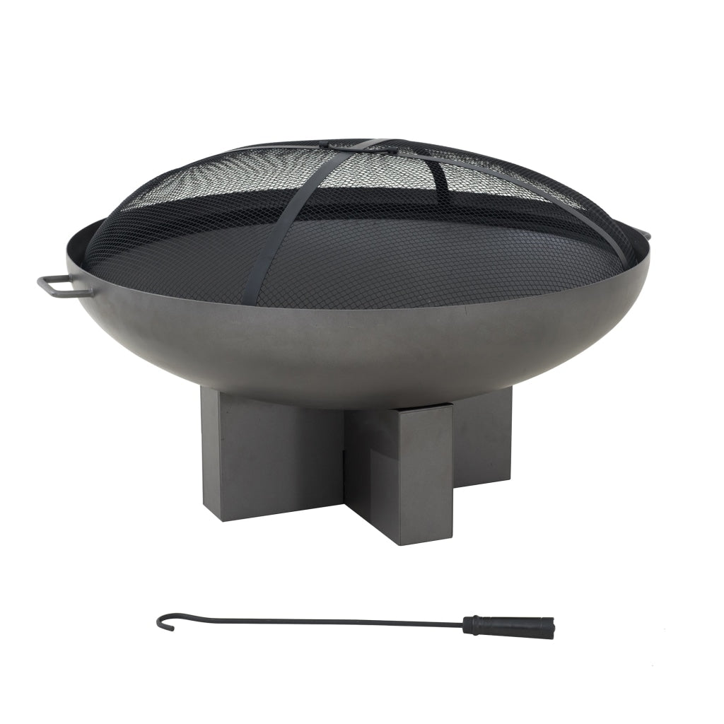 AmberCove 40 in. Black Steel Wood Burning Outdoor Fire Pit with Mesh Screen and Poker