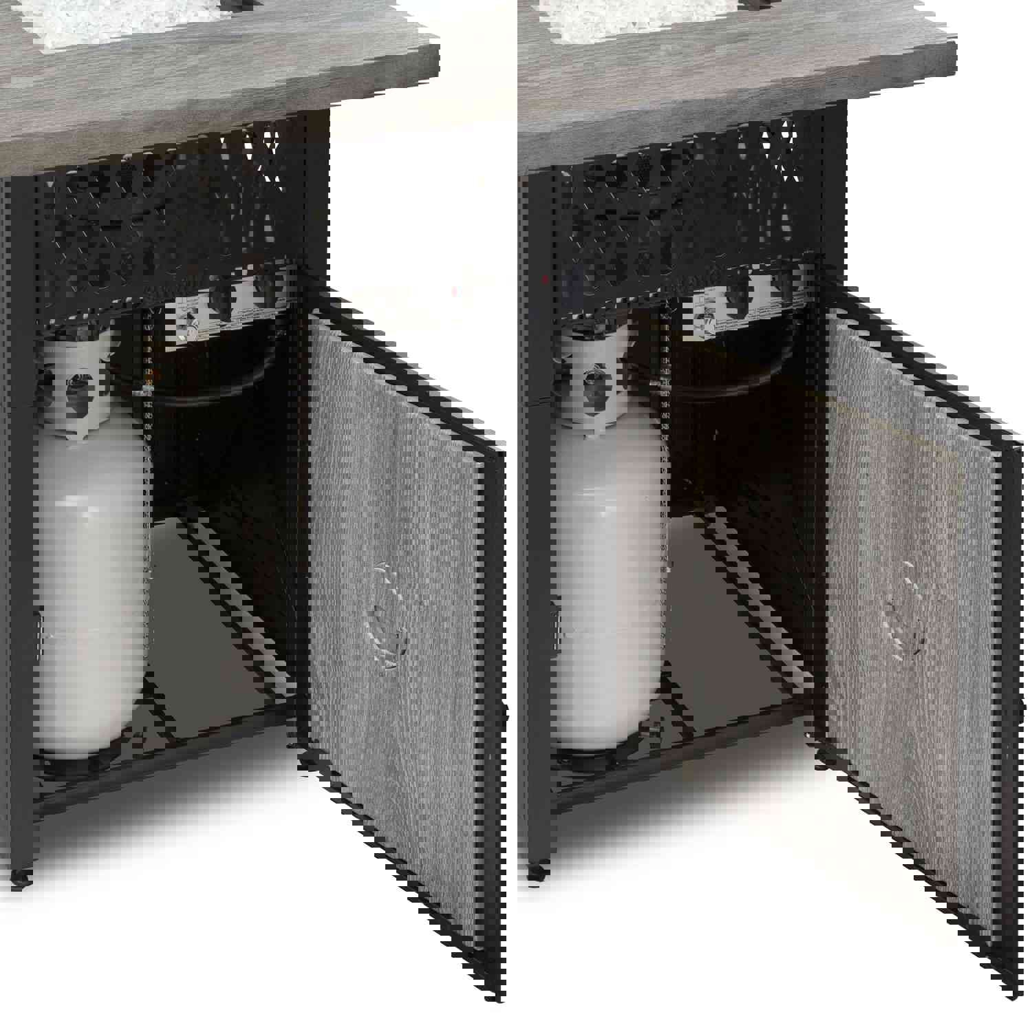 HomeRoots Outdoors Rectangular Wood Look Gas Powered Fire Pit with Lava Rocks, Gray